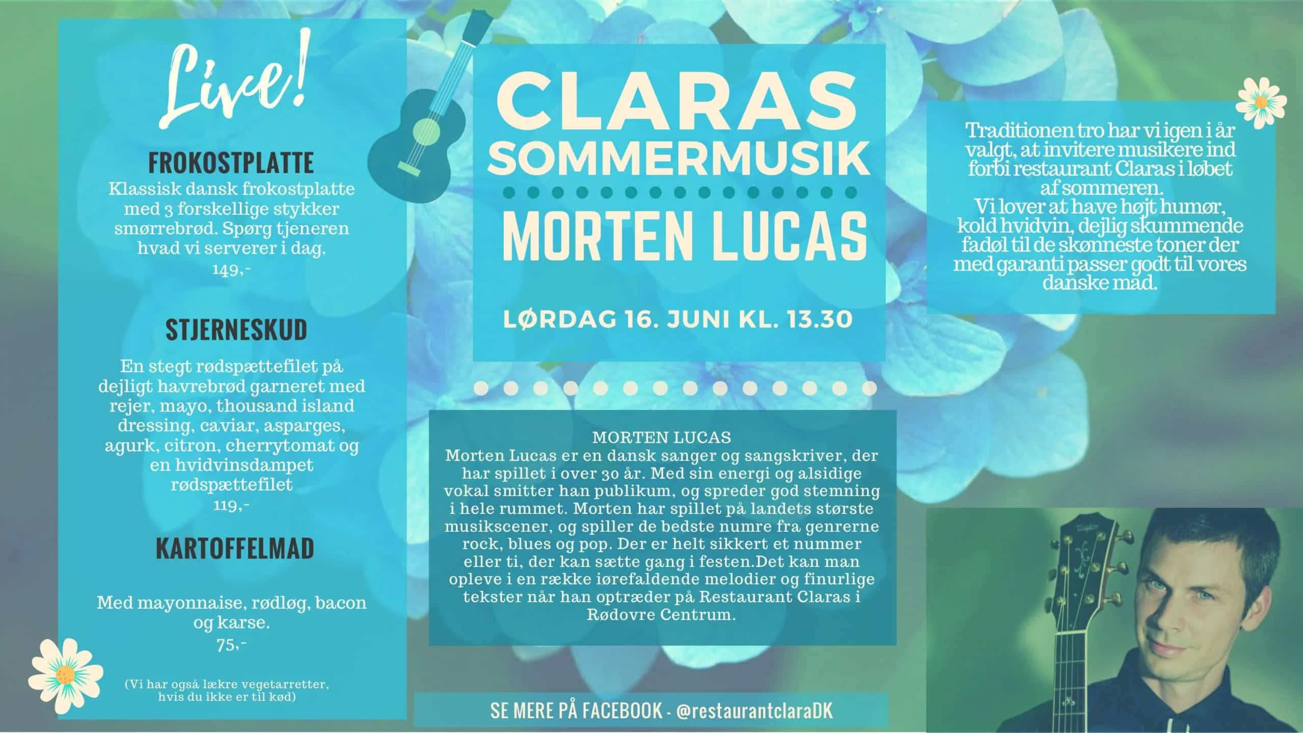 Hos Restaurant Claras holder vi året rundt forskellige typer af arrangementer, såsom livemusik om sommeren og julehygge om vinteren. Vi har blandt andet tidligere haft besøg af den danske sanger Morten Lucas, der spillede cafeens lokaler op til dans og sang.